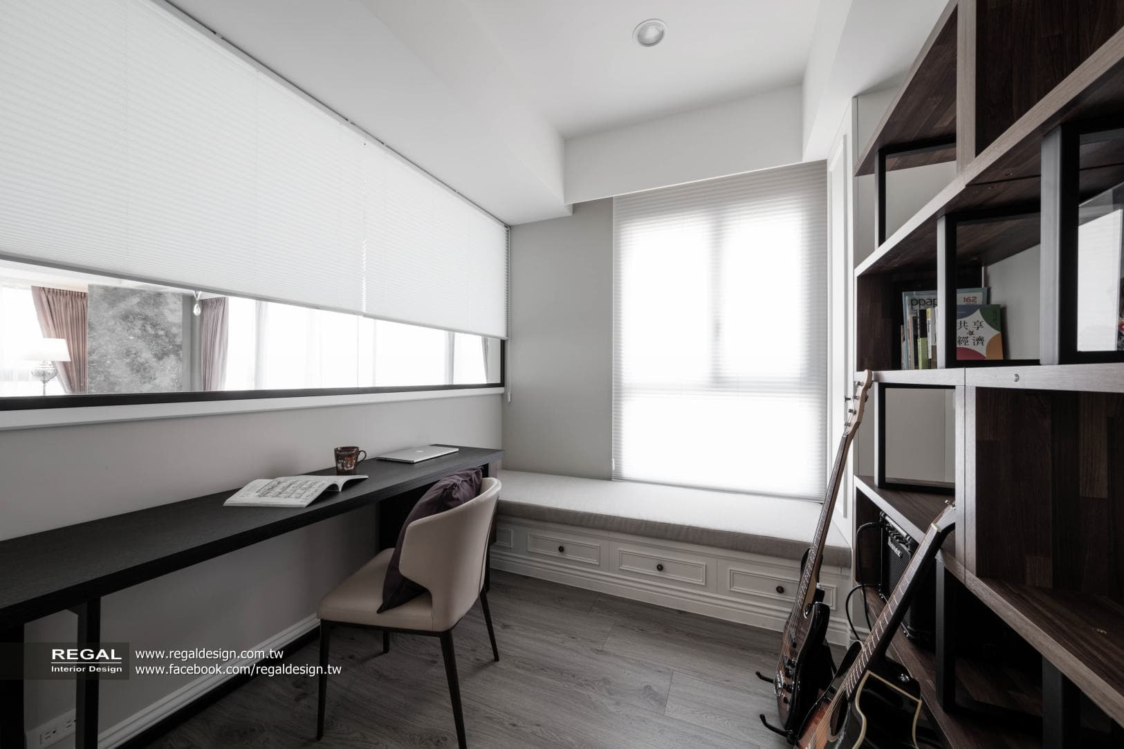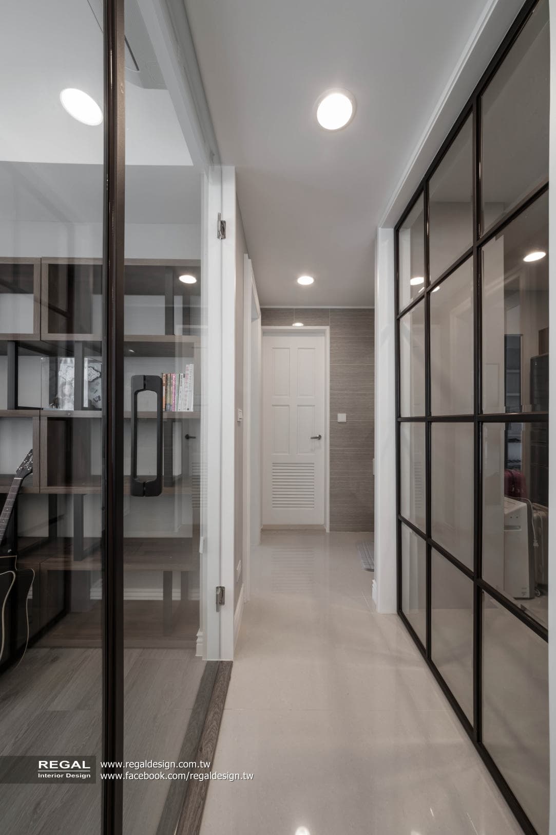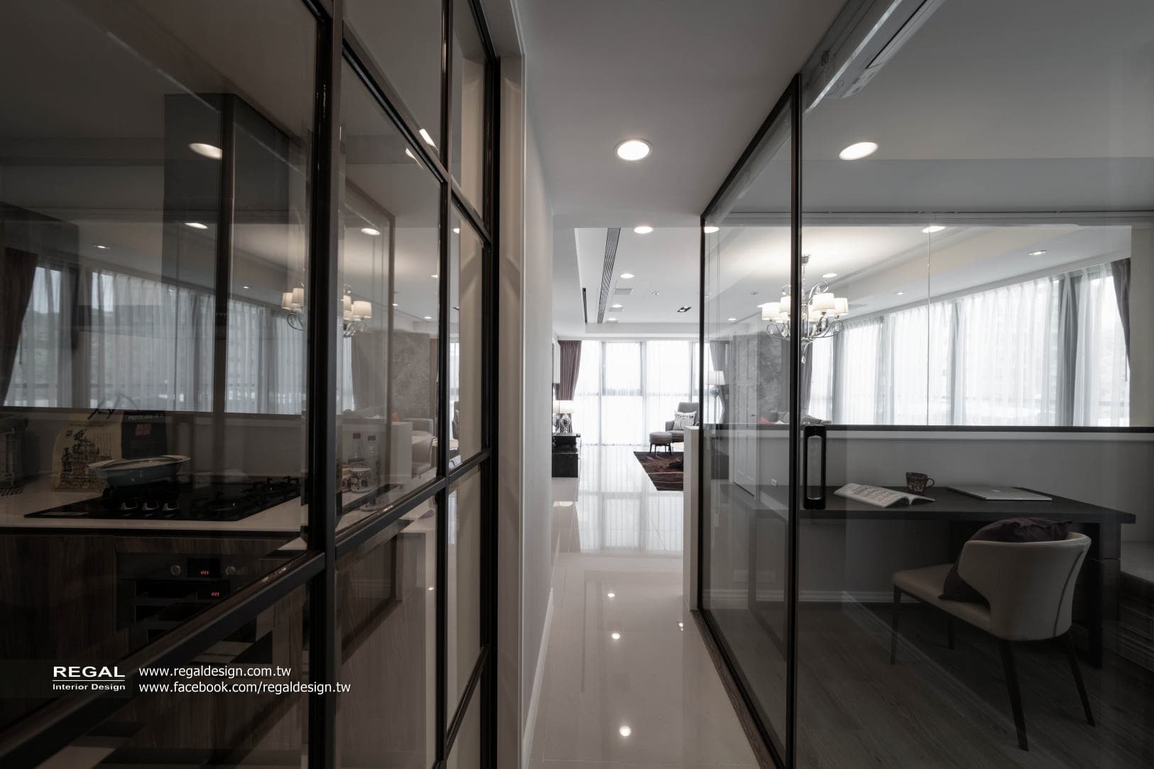 5.工作書房也以玻璃拉門為隔間,引入室內光線也減輕廊道的壓迫感。與廚房的玻璃隔窗拉門戶為對稱,室內坪效更有通透開放的效果,既不影響隔音也阻隔油煙外洩的問題。