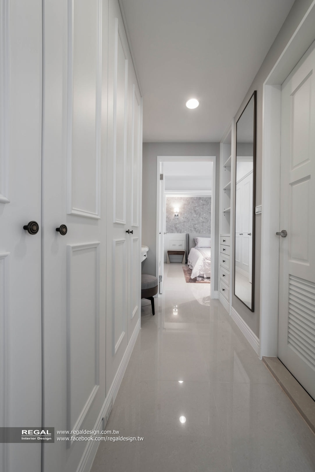 6.主臥室採二進設計,第一道門進入先是更衣化妝間與衛浴室入口,第二道門進入則為臥眠空間,整體仍以新古典的對稱原則為設計規劃。