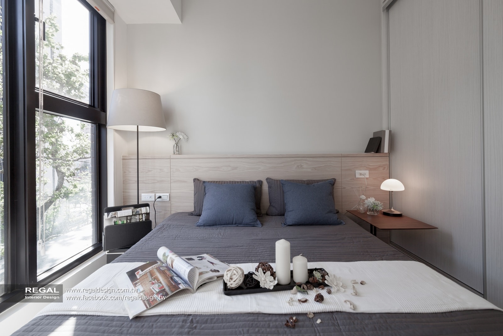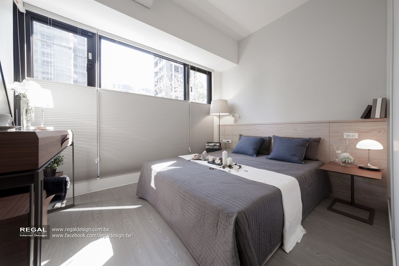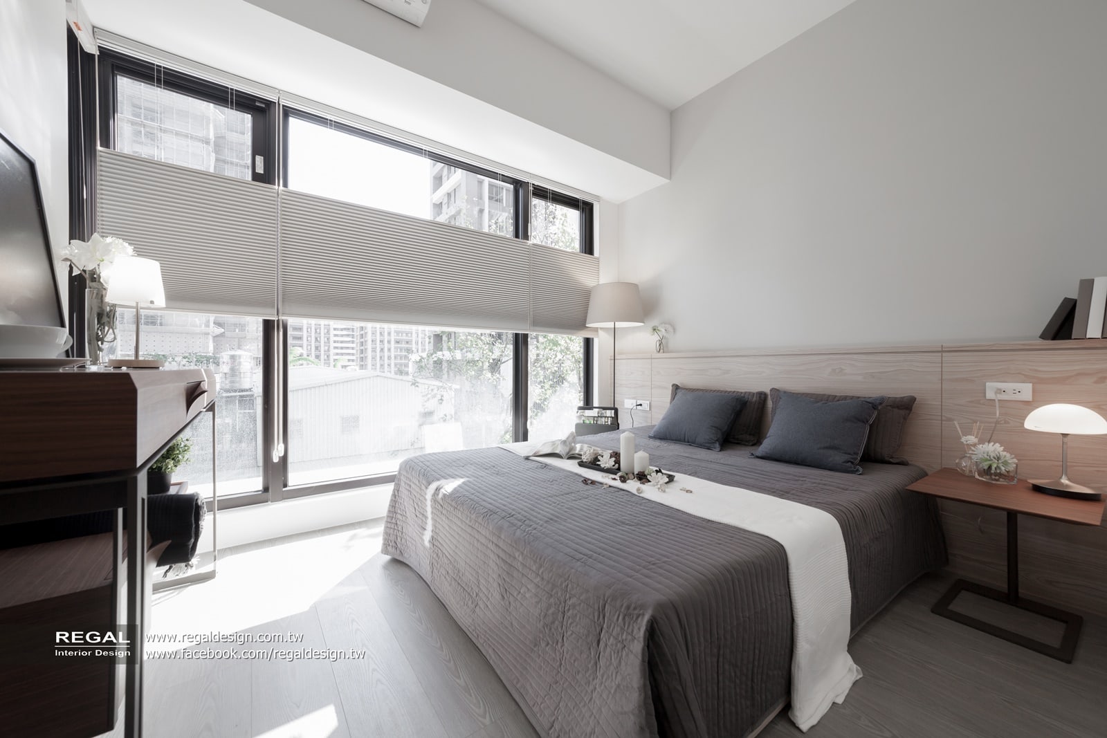 9.主臥落地窗正好是日照充足面,我們特別選用進口風琴窗簾,窗簾可隨著陽光照射的角度,自由調整窗簾上下方決定進光的高度和明暗度。