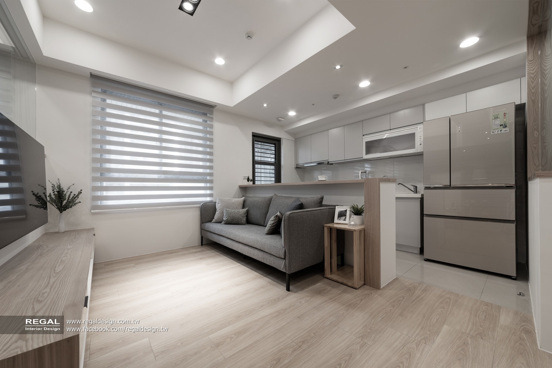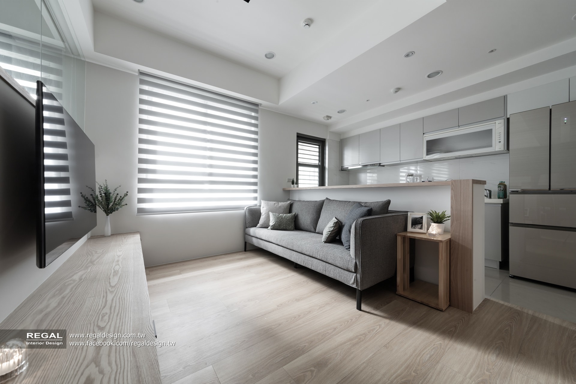 1.為了擺脫僅有單面採光的不理想,將空間配置物換星移,調整原有建商格局,打開公共空間開通視野,使日光蔓延全室,消除採光不足的疑慮。