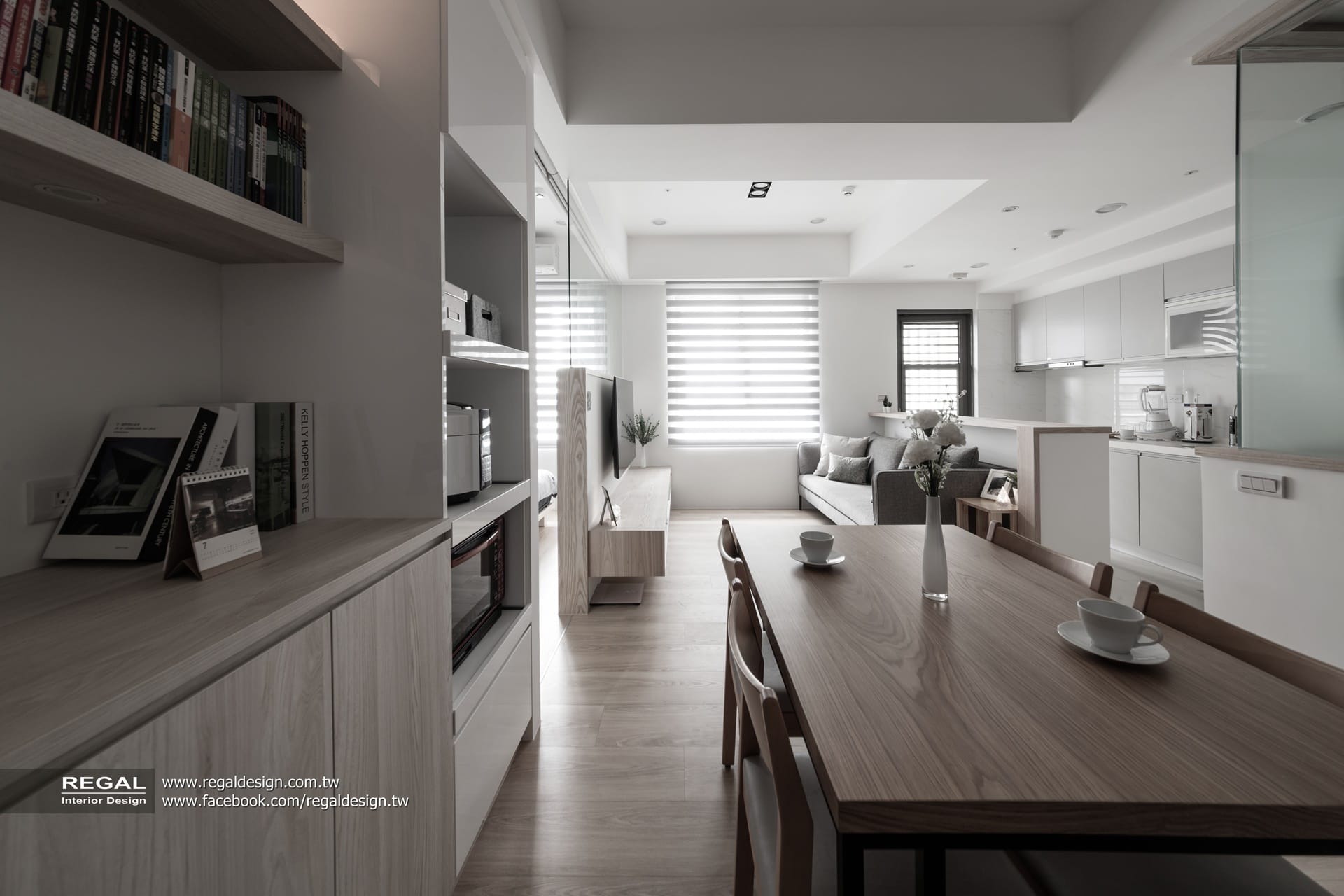 ▲小坪數首要重視收納規劃,考量屋主的閱讀習慣,將閱讀書桌結合用餐區,以複合式設計增設書牆機能,提供屋主收藏日常書籍;