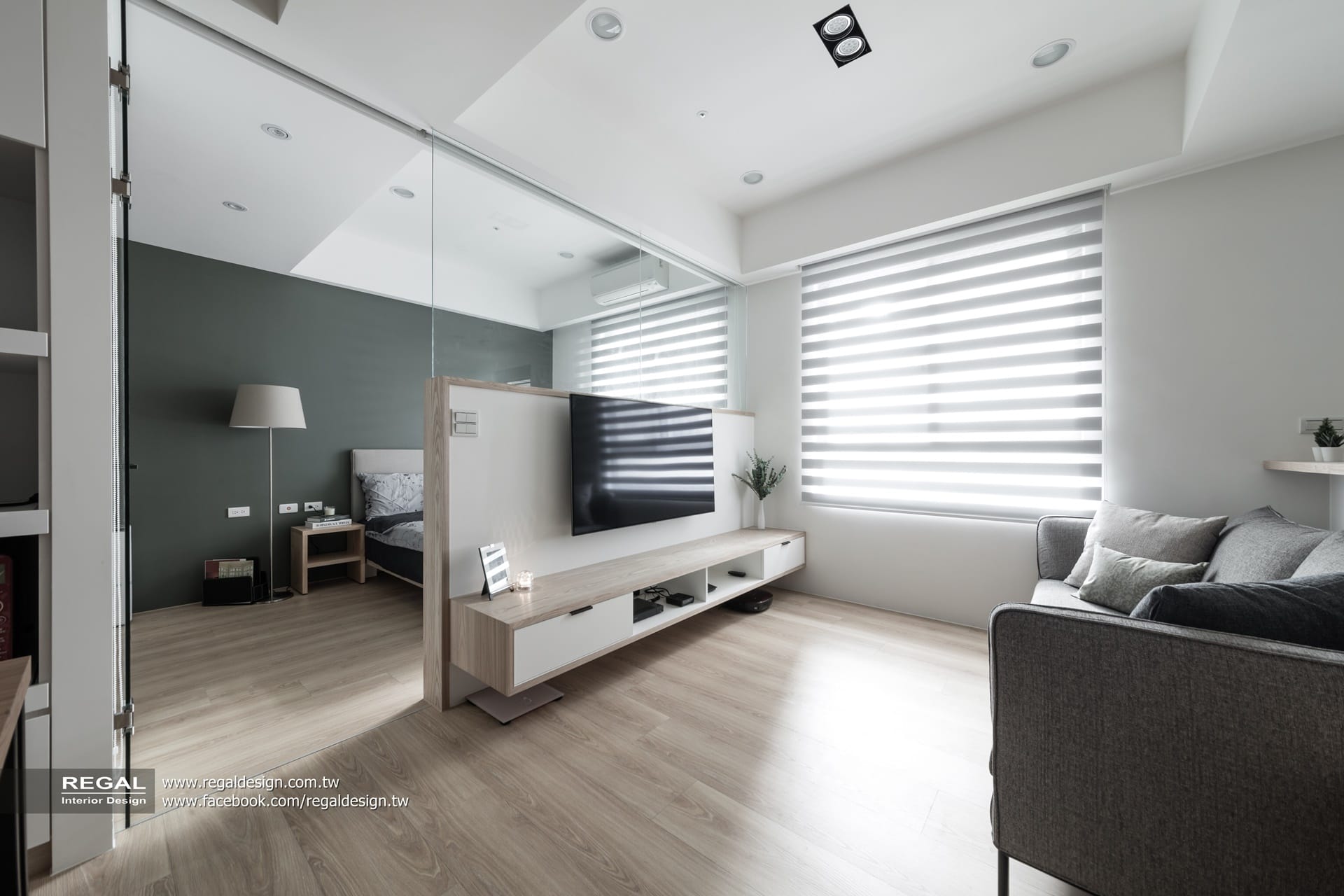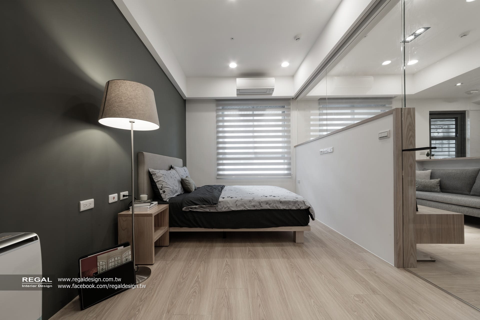 5.將原有隔間牆改以可透視的半玻璃牆面,並設置活動式窗簾增加隱私性。在拿捏自然紋理與玻璃的比例中,透過異材質的結合營造清新氛圍與和諧視覺。