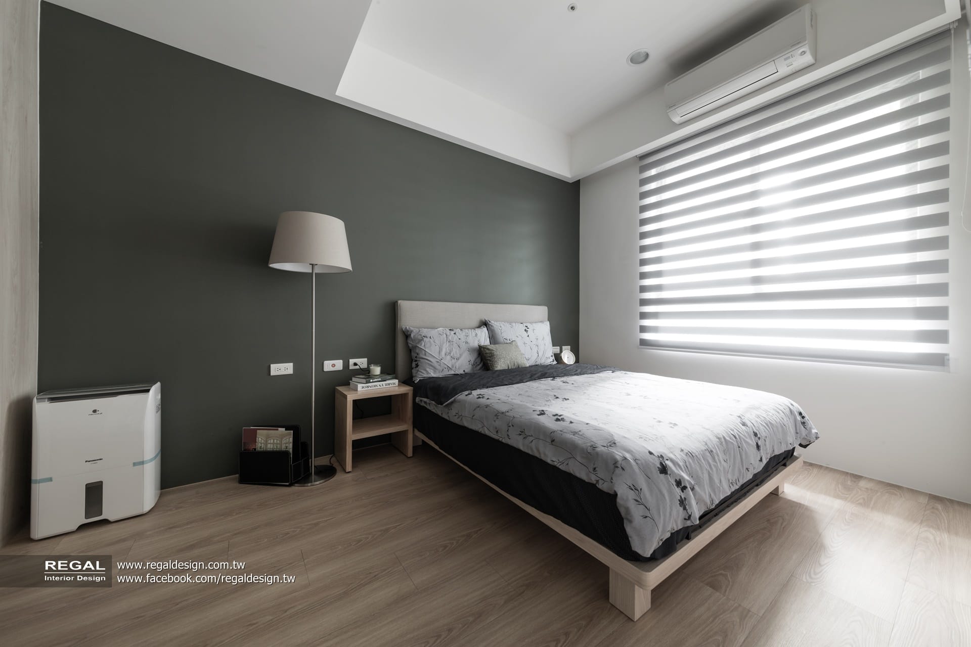 4.主臥空間以木質紋理為日常元素,在明亮的白色基調中染上一抹沉穩墨綠色,營造溫柔而穩定的空間語彙,為生活描繪不同的光影色彩。