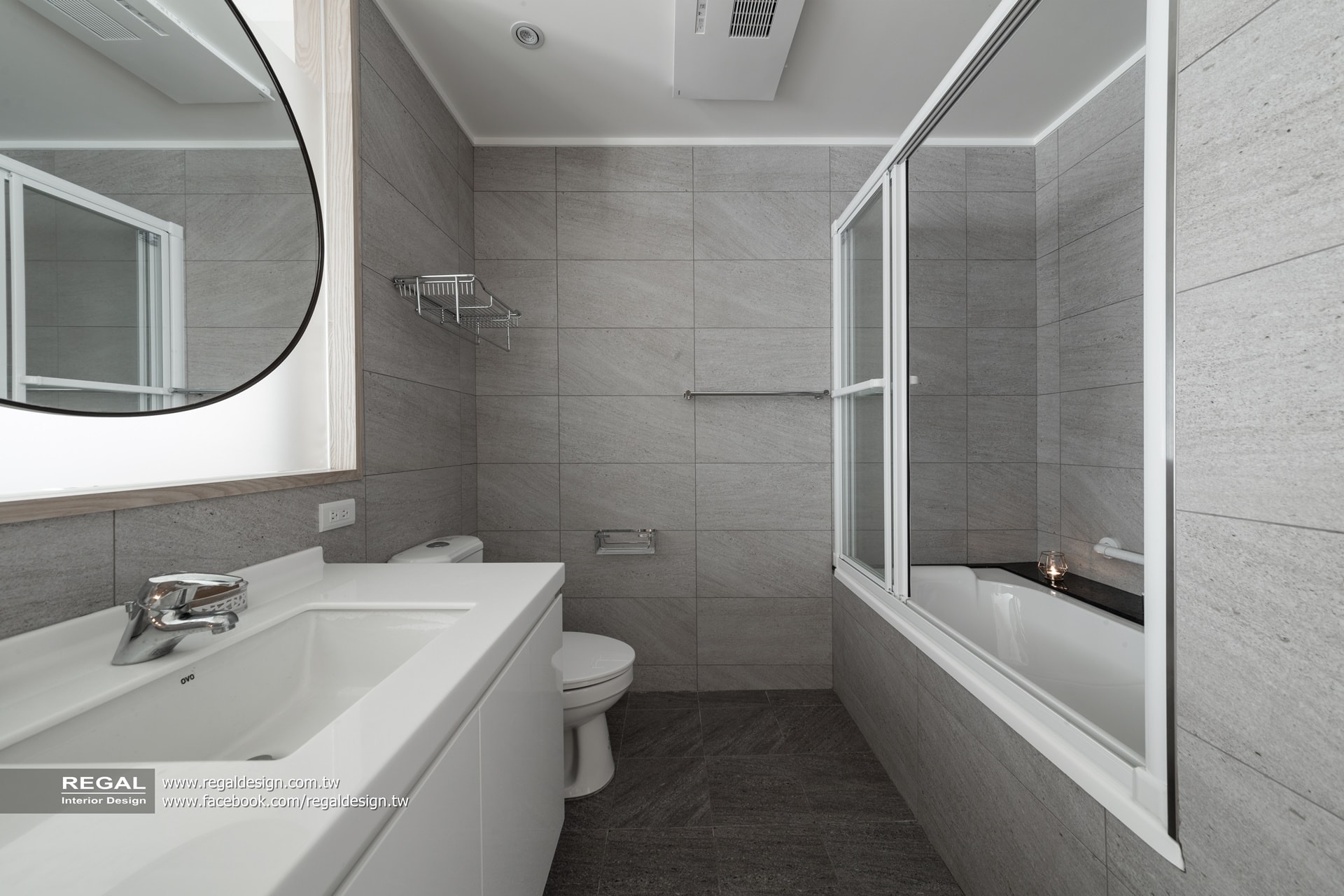 ▲衛浴隔間也利用半矮牆加上霧面玻璃,增加整體空間通透感,與主臥入口相互呼應。移除原有淋浴空間設置浴缸泡澡區。於工作繁忙後,便能擁有一處卸下疲憊與壓力、好好善待自己的專屬天地。
