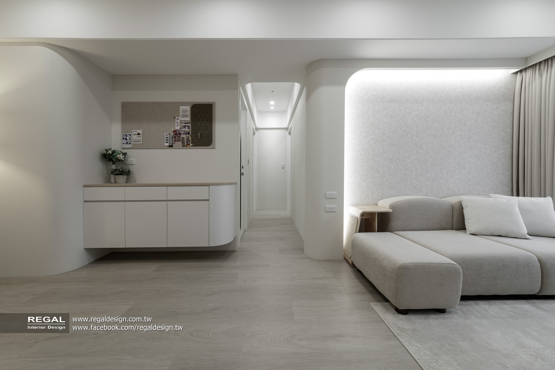1.柔化稜角的圓弧造形設計:消弭牆角銳利感,不僅寵物友善,也為室內動線注入流動的律動。