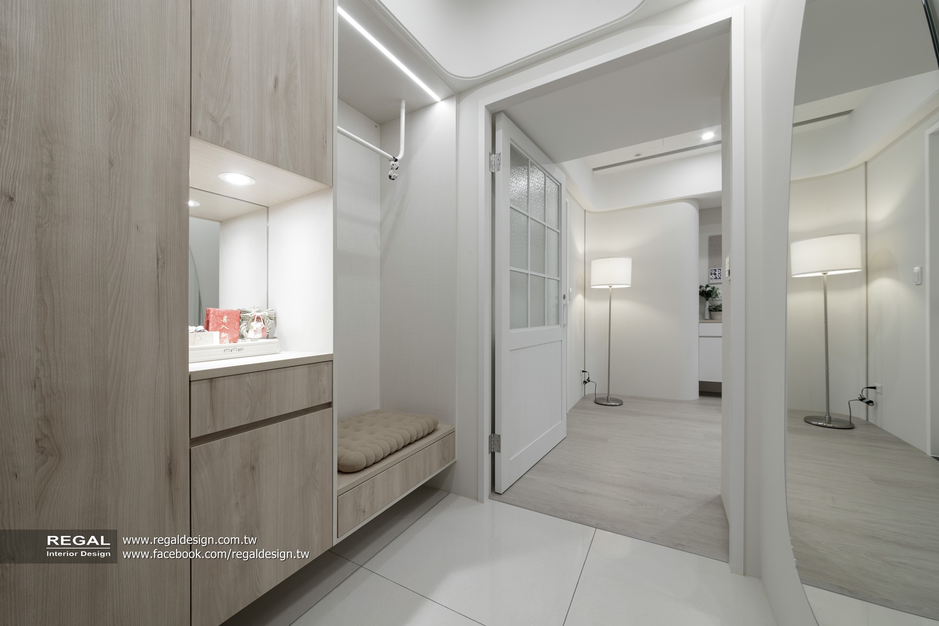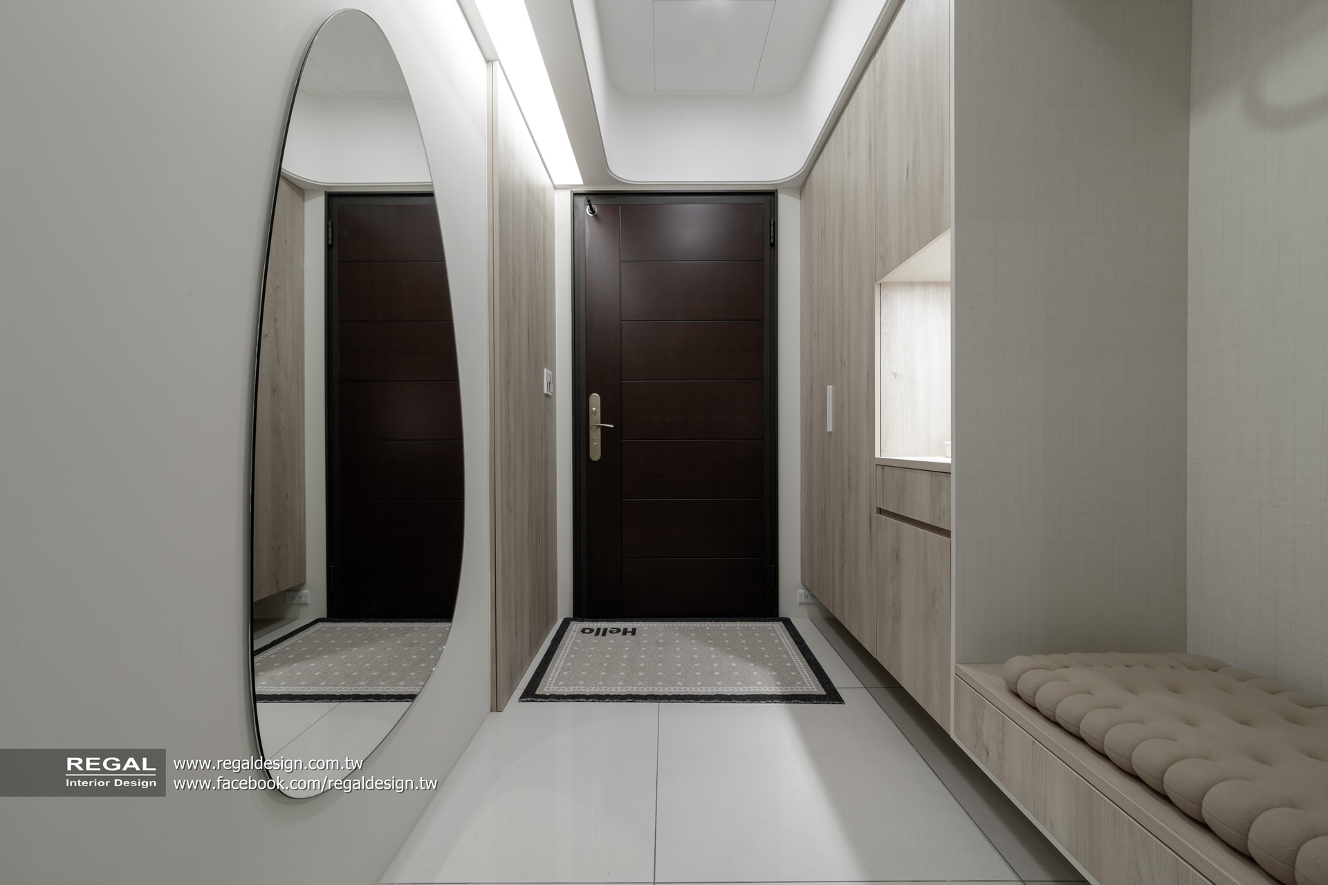 2.乾淨俐落的玄關落塵設計:利用異材質地坪與二進式門片,型塑回家進門儀式感。