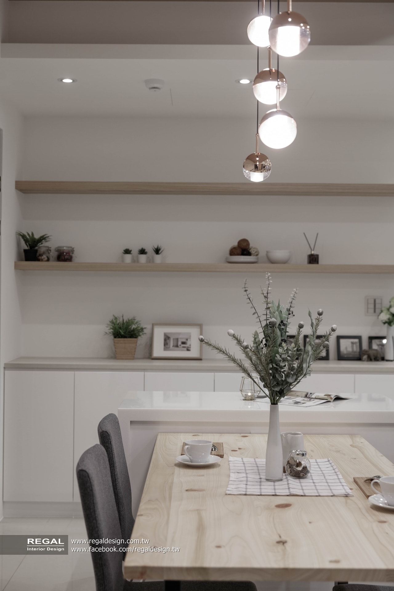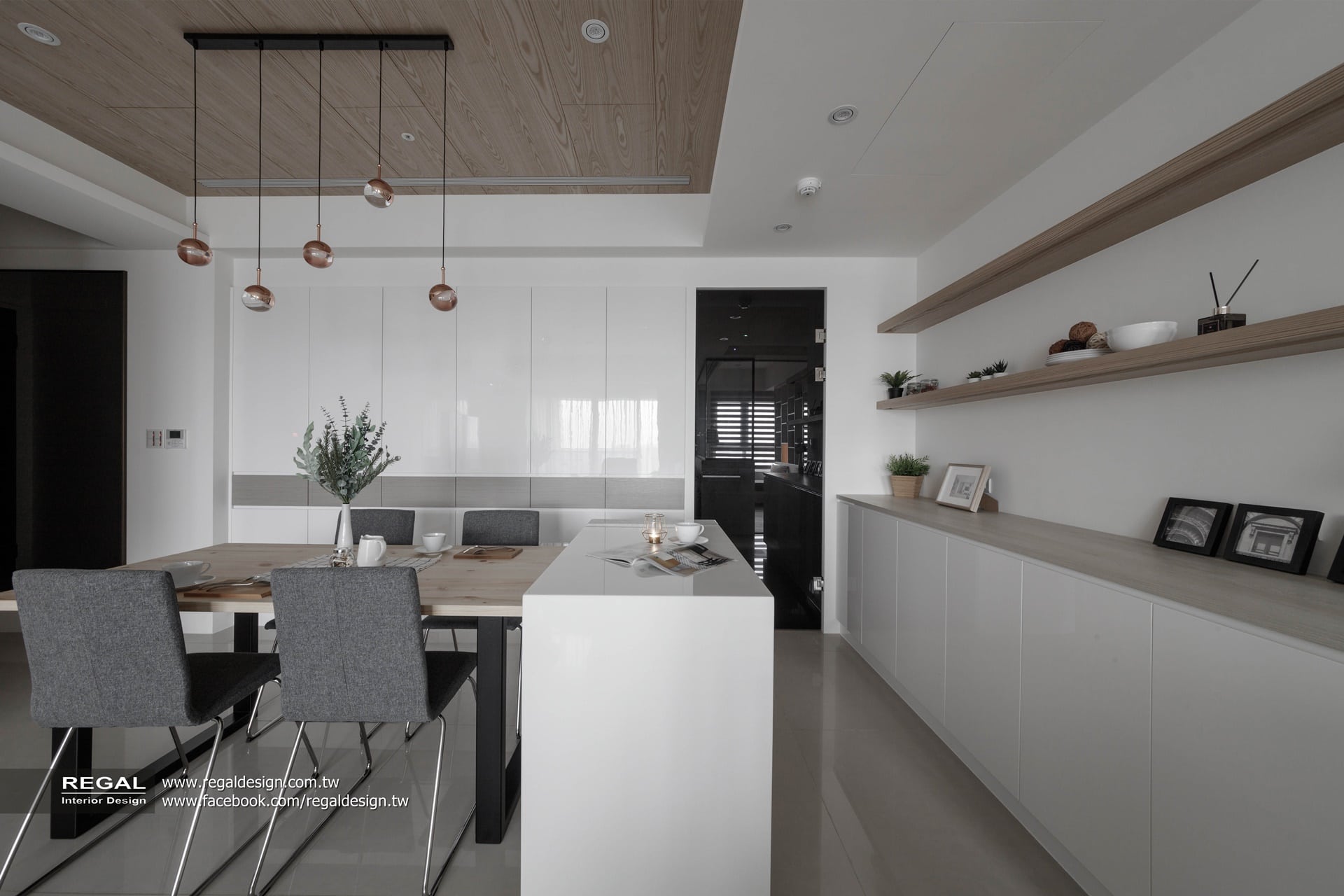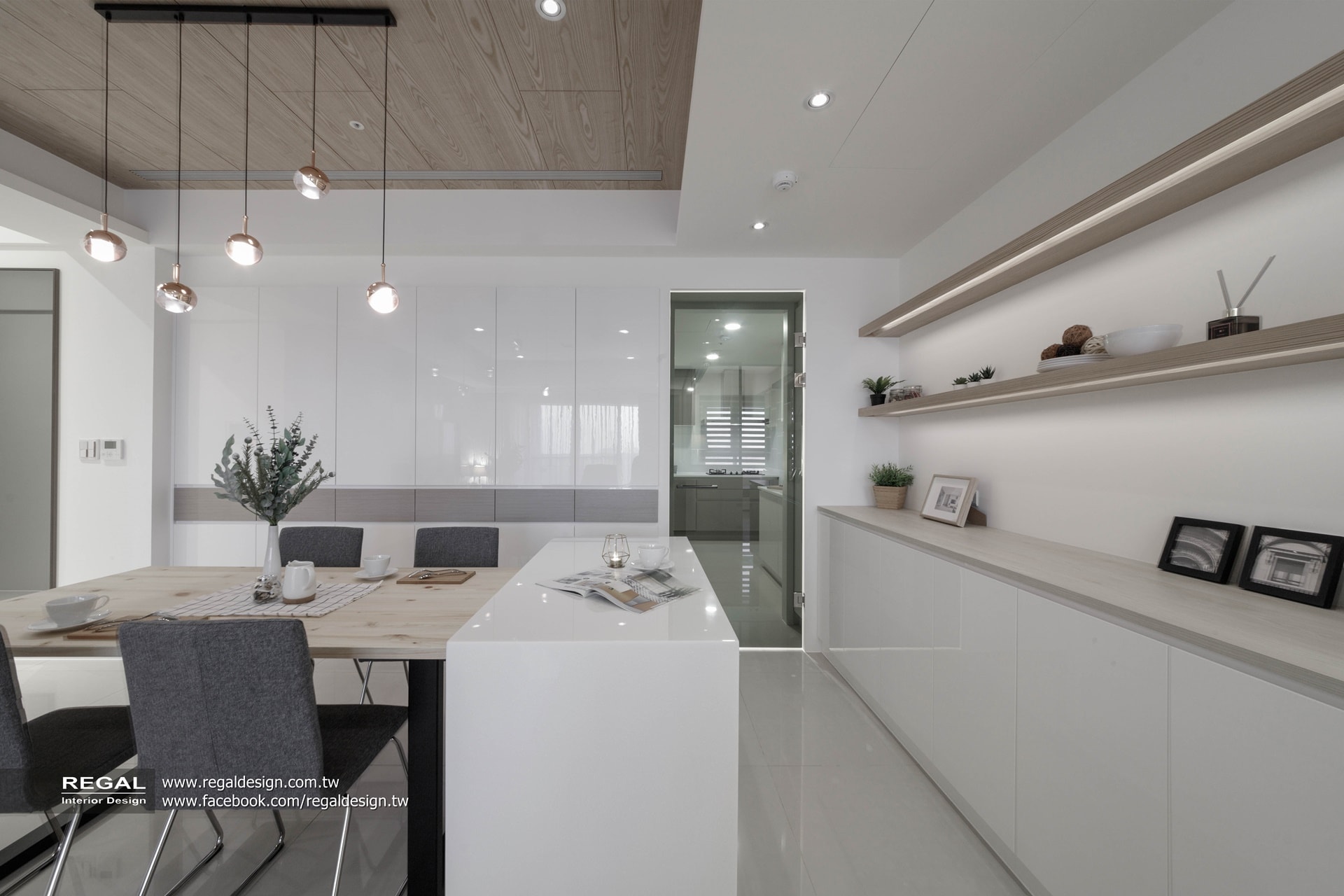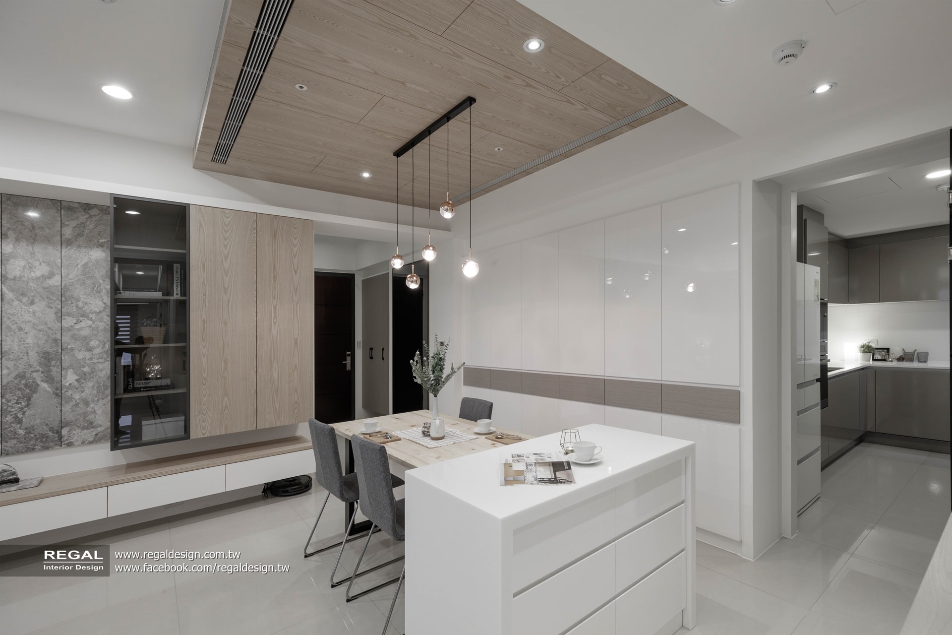 低調簡約的霧灰及簡約白色櫥櫃,搭配木紋質理提升生活溫度,揉合空間主色調