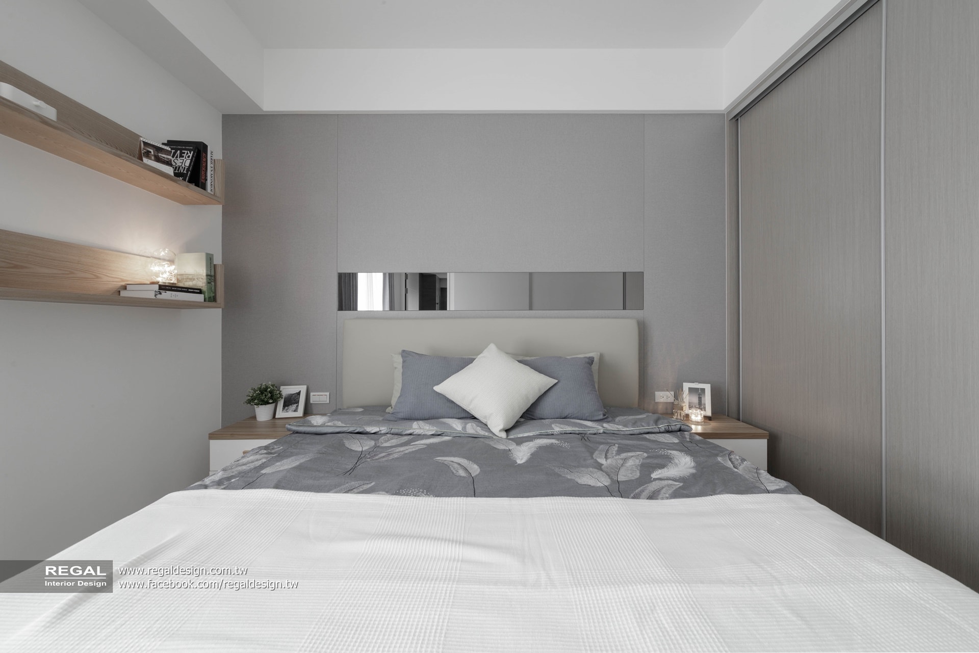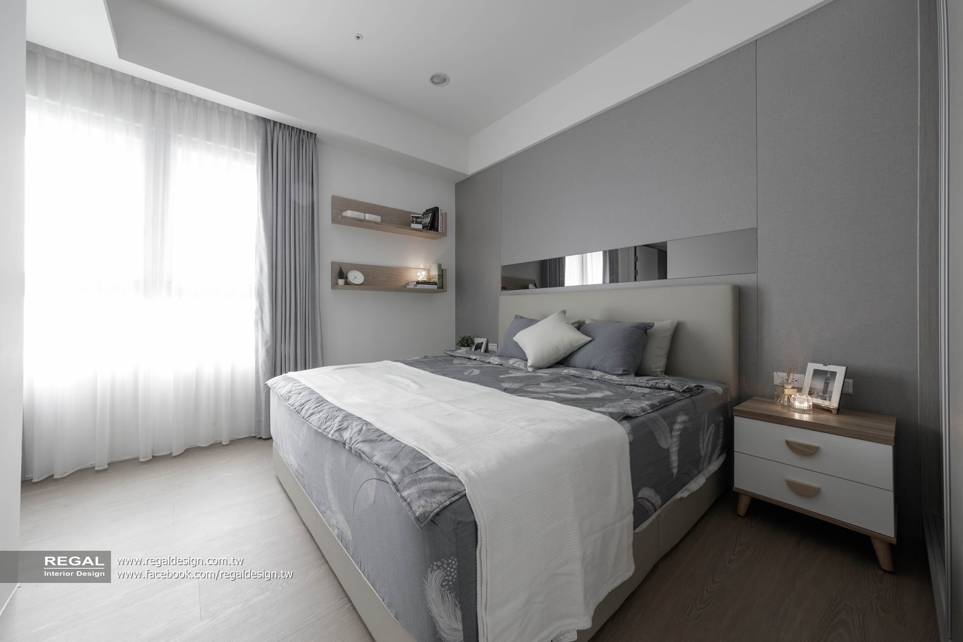 6.主臥室背牆以灰色美耐板增添紋理手感與反光灰鏡,營造沉穩灰階的低調奢華風。