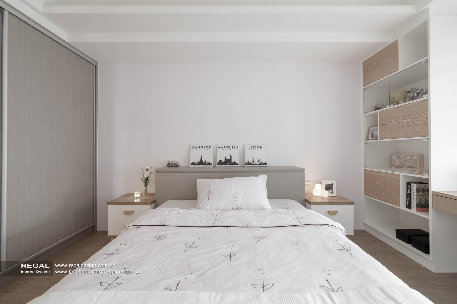 ▲次臥室則利用跳色的手法帶出空間視覺的活潑感。柔和簡約的調性提升舒眠空間的溫度。女孩房使用淡粉色跳色刷漆,而男孩房則是淡藍色跳色刷漆。
