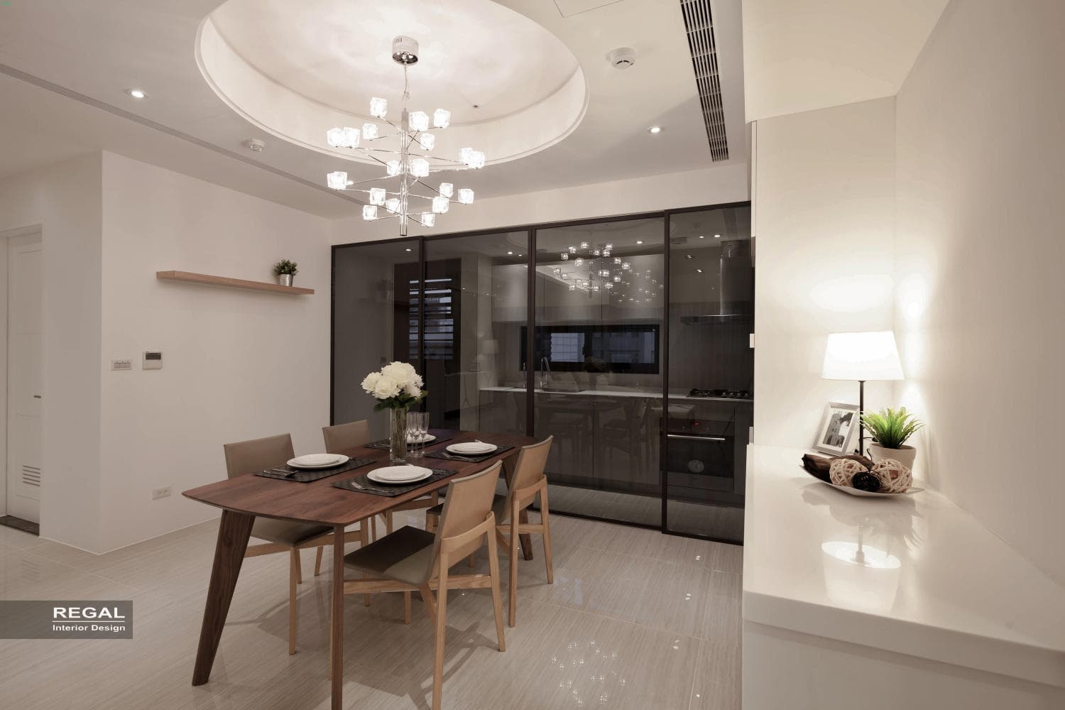 客廳使用天然大理石、進口瓷磚、拋光英石地磚等建材打造整體空間韻味感,與餐廳相連的空間表現開闊且低調奢華的時尚簡約風。